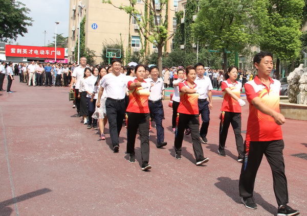 "不忘初心 牢記使命""健康中國 你我同行",公司南院紅綢高懸,西側球場士氣盎然。上午9點50分,在公司黨委副書記、紀委書記、工會主席王寶成發令聲下,"全民健身日"健步走活動正式開始。公司近一千三百名員工依次列隊,在健步走教練的指導帶領下,伴隨歡快律動的音樂,由公司辦公區西籃球場起,依次走過東籃球場、博士樓、錦繡花園酒店、老辦公樓,再回到西球場,環繞三周。三伏天的酷熱沒有阻止全員參與健身的熱情,工程院作為此次健身走的首發隊伍,著裝統一,口號響亮,積極宣揚公司基本經驗,展現出工程設計院良好的精神面貌;公司副總經理牛富敏也帶領總承包事業部員工昂首挺胸,闊步向前。平日寧靜的辦公區內,此時隊伍浩蕩,精神昂揚,揮灑著夏日蓬勃的力量。
